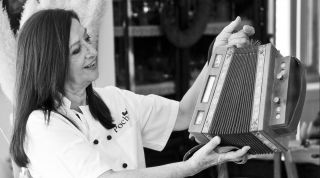 A veces la noche puede enriqueserse con una agradable sorpresa: acompanada por la guitarra o el “lucanetto” (pequeno acordeon), Marilù entretiene a los invitados con un repertorio de antiguas canciones populares,resultado de investigasiones de campo y testimonio de la riqueza cultural de Sicilia.