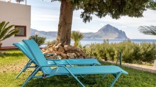 Queste camere hanno vista mare e si affacciano su un terrazzino abitabile da cui si può accedere ad un piccolo prato con sedie a sdraio.